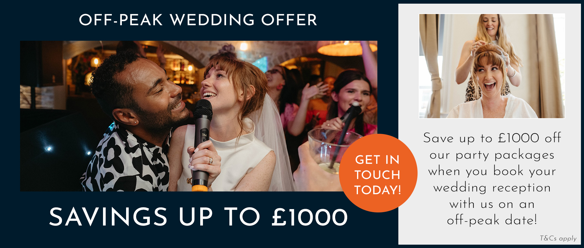 Enjoy exclusive discounts on our wedding packages when you book your ceremony with No.4 and reception with us! Get in touch with the team today to find out more.